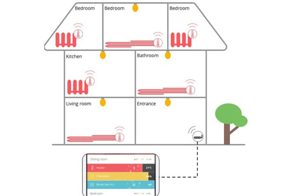 Ngay khi gia chủ tỉnh giấc vì âm thanh của chiếc đồng hồ báo thức, các cảm biến ẩn mọi nơi trong phòng sẽ biết người dùng đã thức dậy và kích hoạt các thiết bị trong nhà. Đèn sẽ tự động bật sáng, nhiệt độ phòng tắm tăng dần, cà phê được ủ nóng, kèm với đó là thông báo về thời tiết hôm nay thế nào.