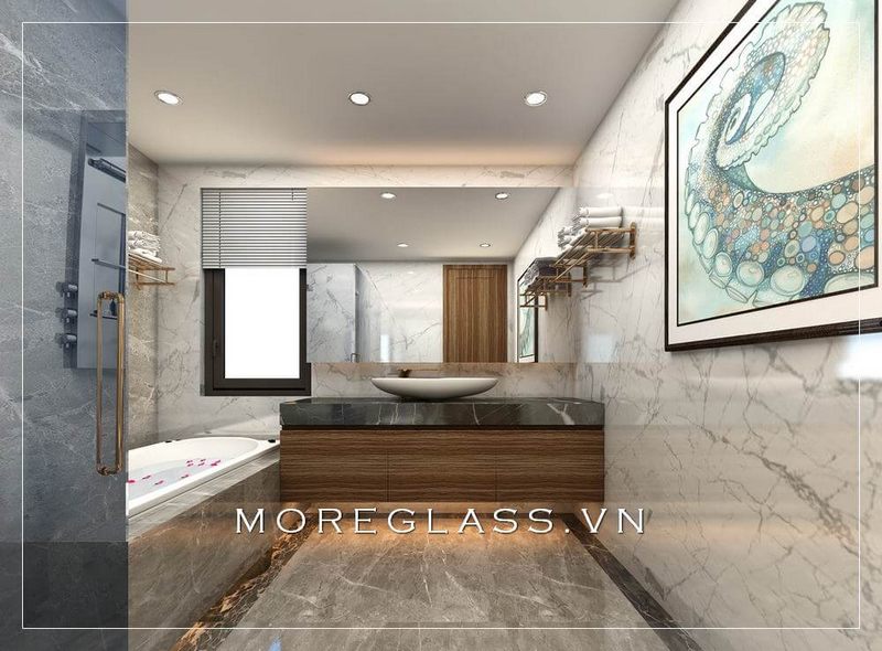 Để tối ưu hóa không gian phòng tắm, hãy xem xét việc lựa chọn các vật liệu kết hợp tốt với nhau để tạo sự hài hòa trong thiết kế. Ví dụ, sử dụng khung cửa sổ bằng nhôm hoặc thủy tinh cường lực có thể làm nổi bật nét hiện đại trong khi vẫn bảo đảm khả năng chống ăn mòn từ hơi nước. Bên cạnh đó, sơn chống ẩm cho tường là một giải pháp thông minh giúp giảm thiểu hiệu ứng xấu từ môi trường ẩm ướt mà không làm mất đi tính thẩm mỹ tổng thể của căn phòng.