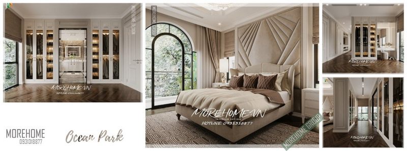Bên cạnh đó, chất liệu và màu sắc cũng đóng vai trò quan trọng trong việc tạo cảm giác cởi mở cho phòng ngủ. Nội thất với màu sắc nhẹ nhàng như pastel hay các gam màu trung tính kết hợp với đèn LED âm trần sẽ giúp tôn lên vẻ đẹp thanh lịch, đồng thời đánh lừa thị giác khiến căn phòng trở nên rộng rãi hơn. Sử dụng gương lớn cũng là mẹo hay để phản chiếu ánh sáng và tạo chiều sâu cho căn phòng, biến nó thành góc thư giãn hoàn hảo sau những giờ làm việc căng thẳng.