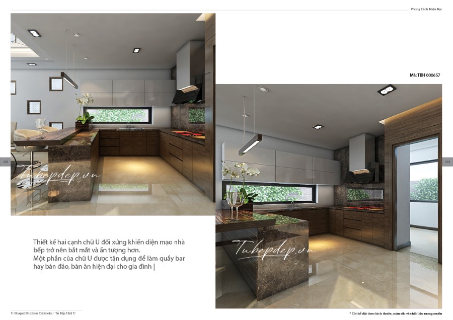 Ấn tượng với mẫu thiết kế nội thất phòng bếp chung cư, nhà phố, biệt thự hiện đại sang trọng kiểu dáng chữ U được nhiều gia chủ yêu thích chọn lựa.